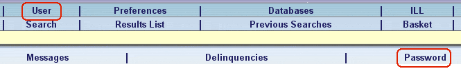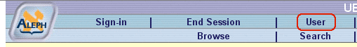 If you log in to the Aleph by use of your login and current password, you can access the button User at the top menu bar. After clicking on this button other options will open under the top bar, one of them being the Password.