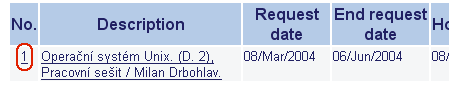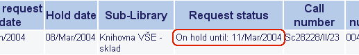 It is not possible to place a request for every item. Whether the item can be borrowed and how long for depends on the status of the document. Currently there can be placed orders via the internet for books with status for 1 month (na 1 měsíc) and 1 semester (na 1 semestr) that are located in these libraries: