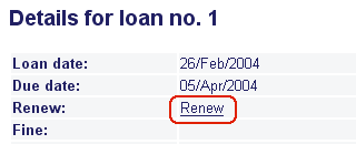 Loans can be renewed individually. If you have a list of loans displayed, then it is possible to display other details of a loan. Apart from purely information data there can display an offer to renew the respective loan.